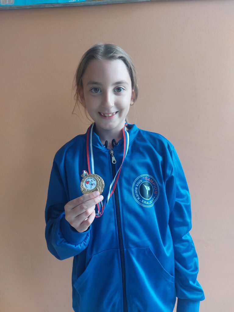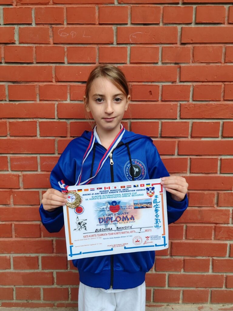 Ученица другог разреда ИО у Јарчујку, Елеонора Баиновић је прошлог викенда узела учешће на такмичењу у каратеу на Првенству Србије, које је одржано у Спортском центру Жарково у Београду. Радила је кату Heian Shodan у категорији жути појас и освојила 1.место! Честитамо!!!